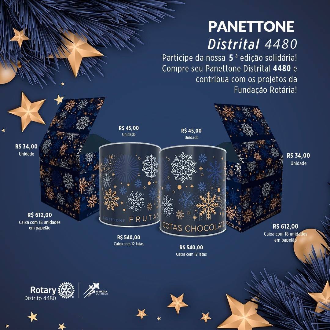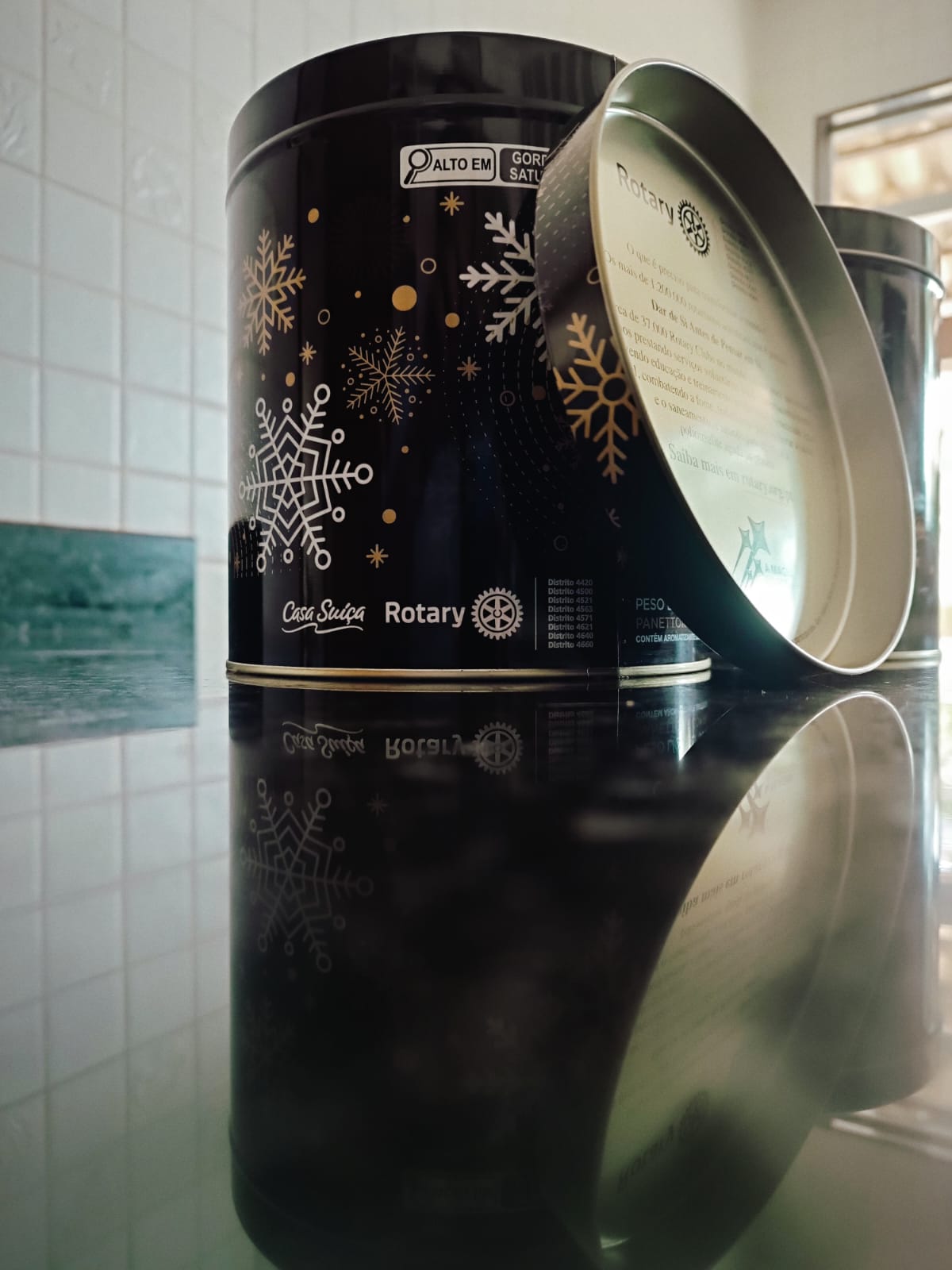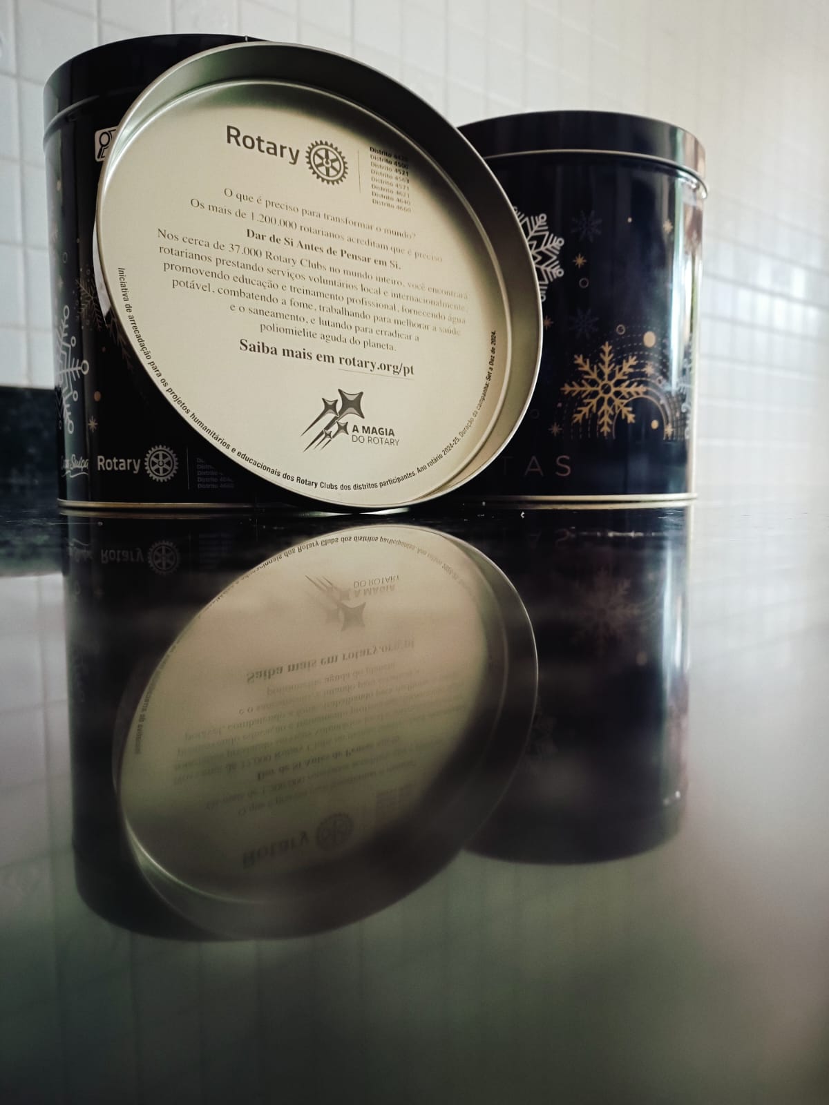Os Panetones de Natal do Distrito 4770 são uma opção perfeita para presentear com significado. A lata especial valoriza a entrega e torna o produto excelente para encomendas natalinas, lembranças corporativas e ações com parceiros. Ao encomendar, você apoia diretamente as arrecadações destinadas aos trabalhos do Rotary ao longo da gestão.